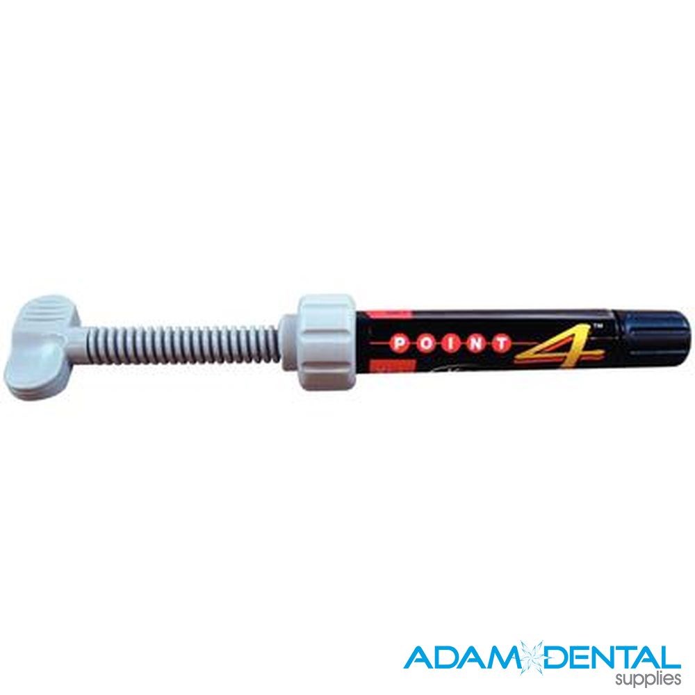 Point 4 optimized particle composite system is a light-cured, resin-based composite dental restorative that contains approximately 76% by weight (57% by volume) inorganic filler with an average particle size of 0.4 microns. All shades are radiopaque. Point 4 represents years of research aimed at bridging the gap between microfill and hybrid composite materials. A patented grinding process combined with sophisticated rheological modifiers allow Point 4 to polish to a very high, long-lasting luster similar to microfills, while providing strength equivalent to today's microhybrids.